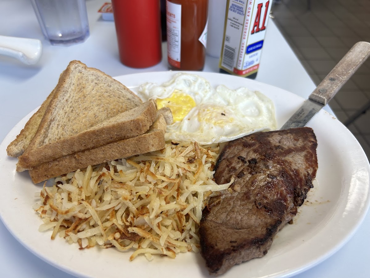 Breakfast here is a clear draw. The pancakes come out large, with a crisp edge that suggests they’re cooked to order rather than reheated. Popular plates include classic combos like steak and eggs, pork chops, and biscuits and gravy, each prepared with an eye toward generous portions and familiar flavors. The goetta, a regional specialty, gets a nod here, showing how the diner honors local taste alongside standard diner staples.